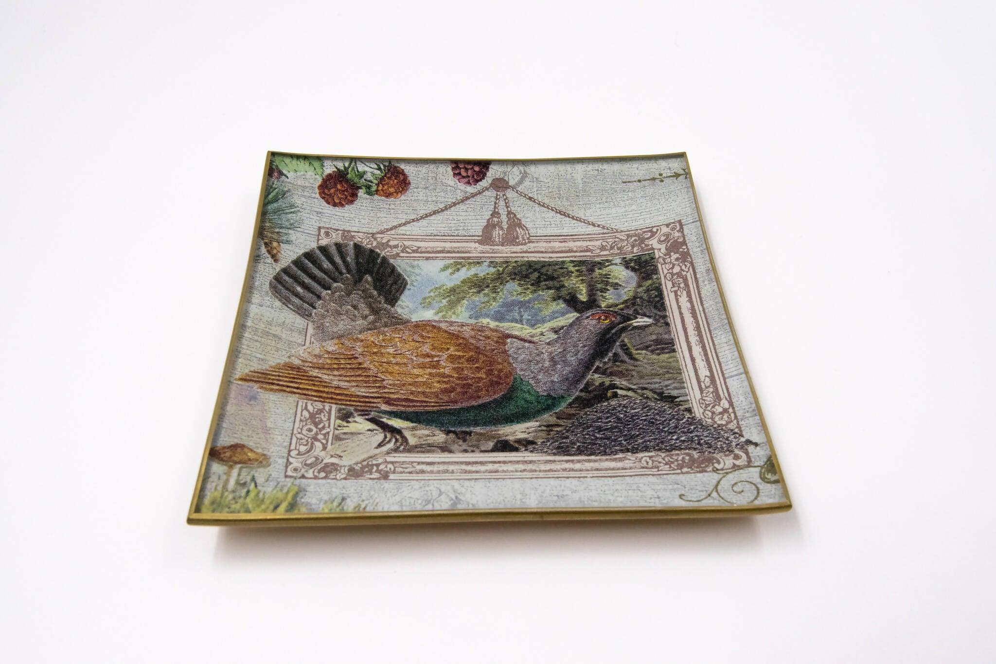 Dimensions 15x15CM . Glass plate hand-decorated in Spain using the decoupage technique. Ideal as a pocket-sized container , for serving canapés , snacks , a cheese board, or cookies . Or simply for decoration . They look great anywhere!