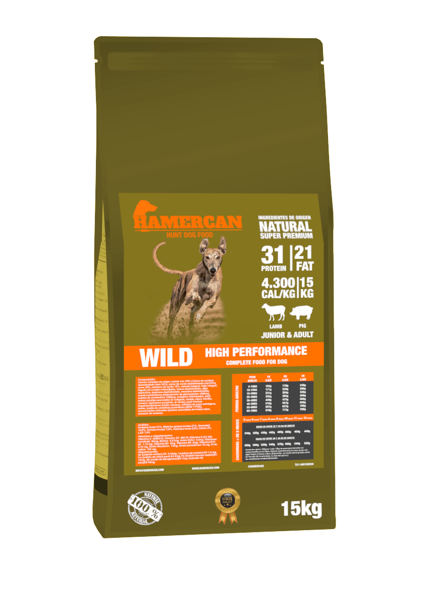 A high-performance recipe that provides a large amount of high biological value proteins that are easily absorbed, a high percentage of fat that provides a long-lasting source of energy rich in Omega 3, 6 and 9, which help to take care of the health of the skin and hair, it is also high in vitamins, minerals and chondroprotectors that protect the bones and joints from the high activity that a hunting dog develops in full season, with this food your companion will never give up.